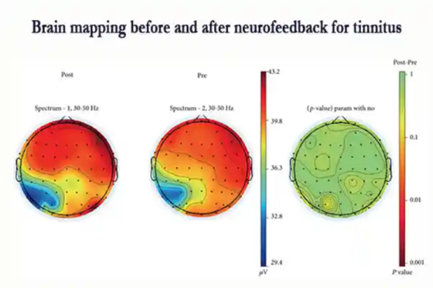 With neurofeedback tinnitus training, you work directly on normalizing irregular brainwave patterns. Many people with tinnitus show hyperactivity in auditory or attention-related brain areas. Neurofeedback trains the brain to reduce this hyperactivity, helping to lower the perceived loudness and emotional impact of tinnitus. Neuroimaging studies have shown that individuals with tinnitus often exhibit abnormal brain activity, particularly in the auditory cortex and its surrounding brain regions.